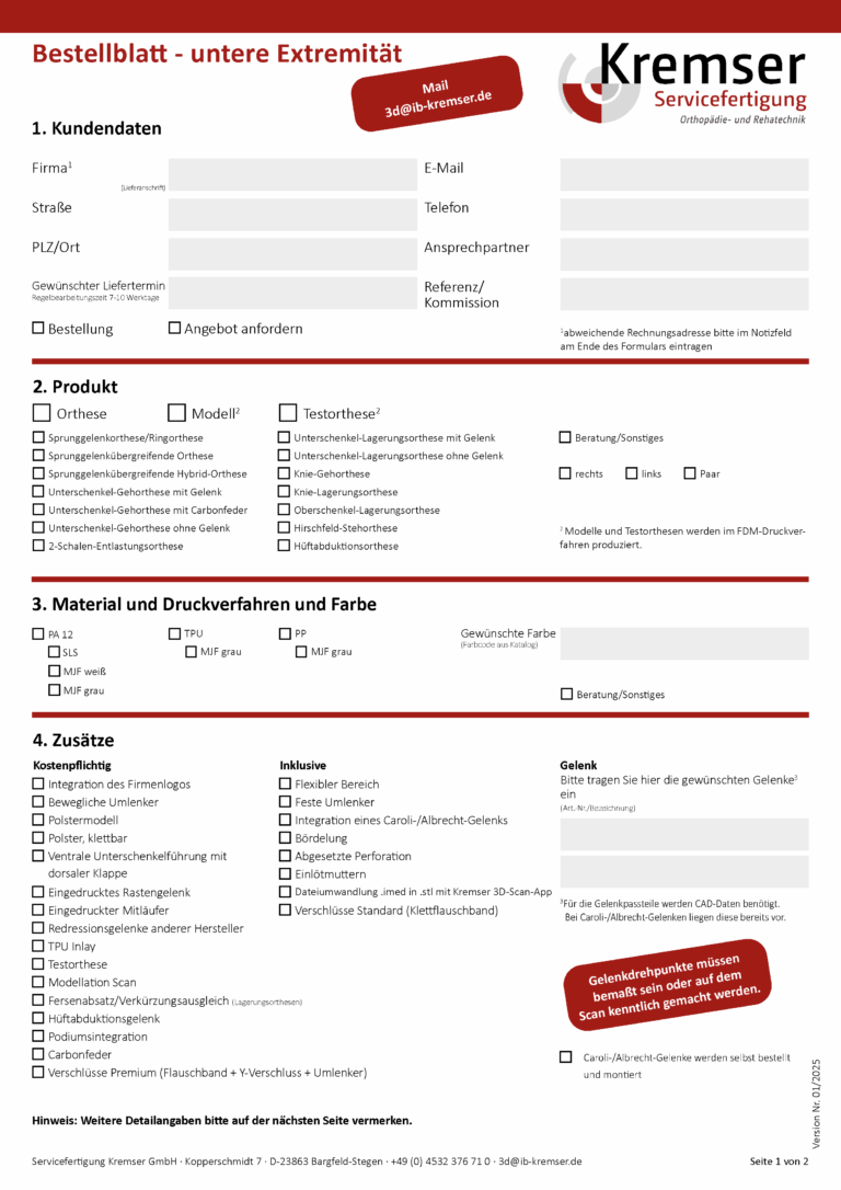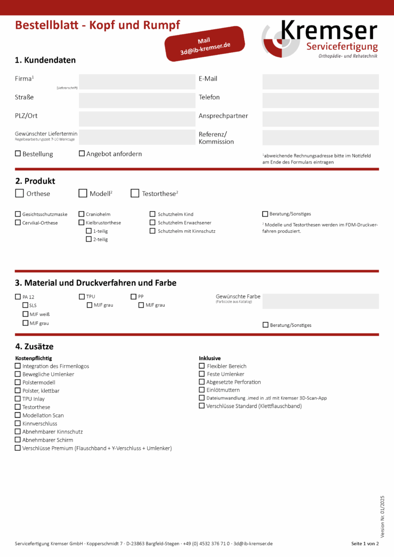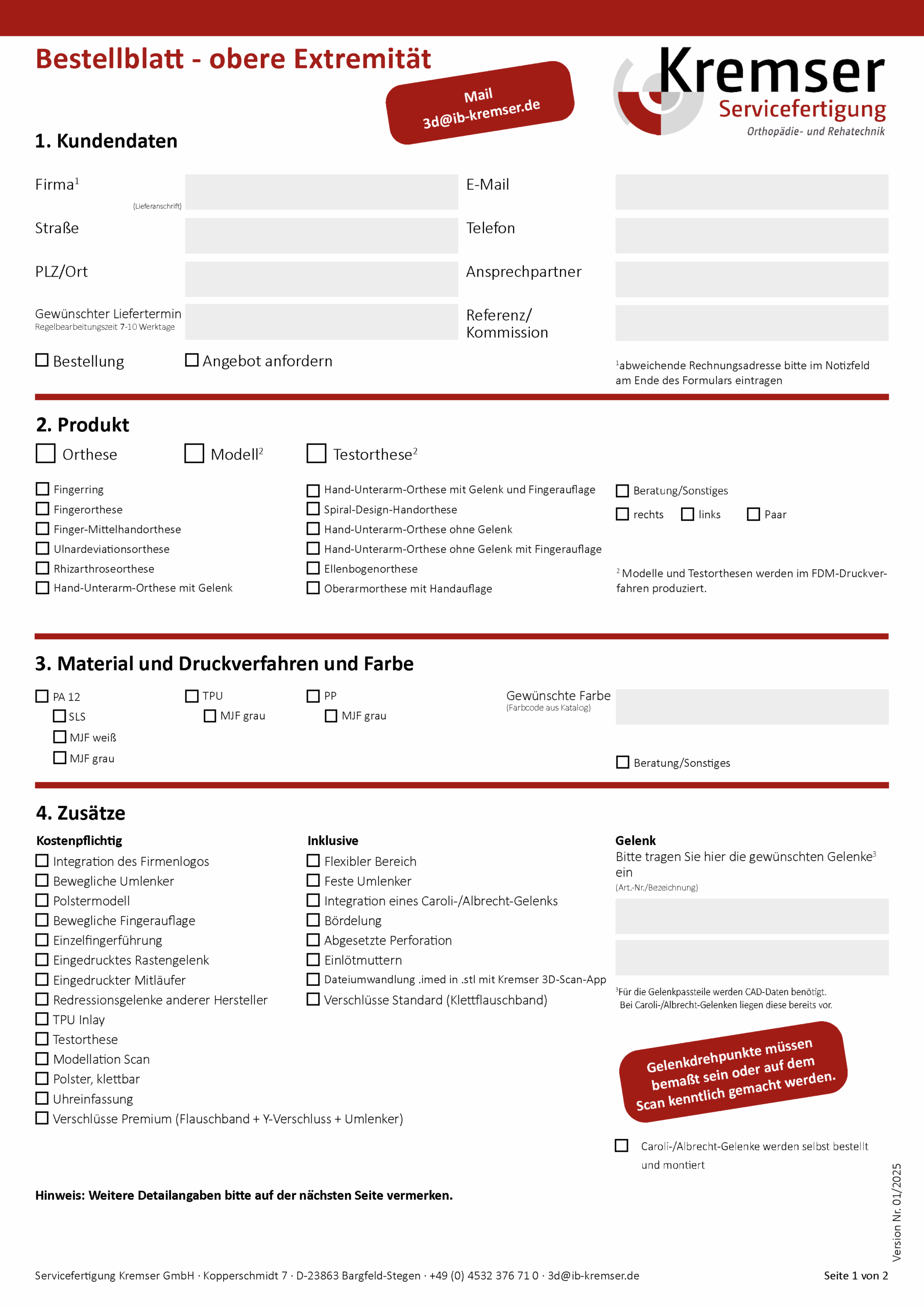 Für Ihre Bestellung bei uns füllen Sie bitte das passende Bestellblatt aus und notieren alle relevanten Daten, die für die Bearbeitung Ihrer Bestellung notwendig sind. Nutzen Sie unseren Upload, um uns Ihre Bestellung inklusive aller Daten und Anlagen zukommen zu lassen.
